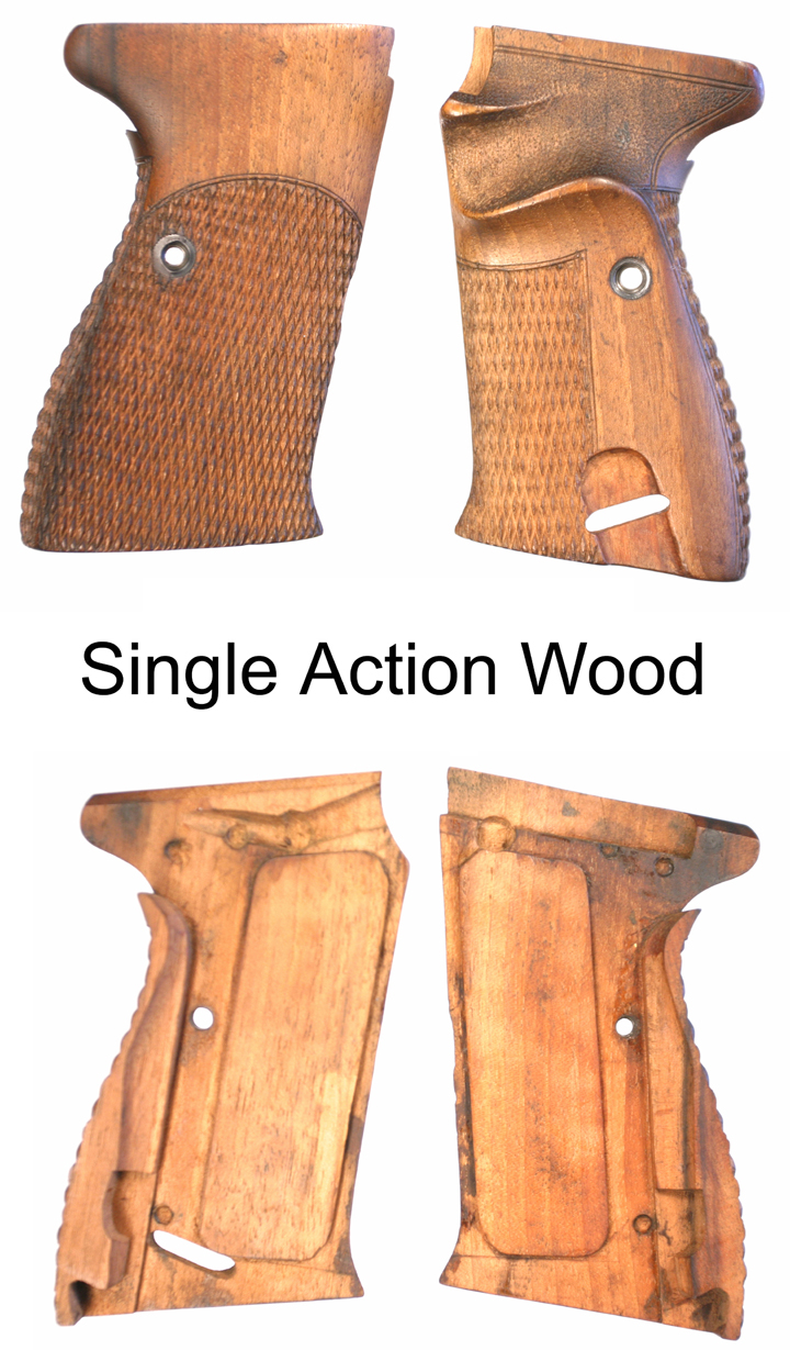 These are the only examples of WWII production factory grips for the P.38 that are made of wood.